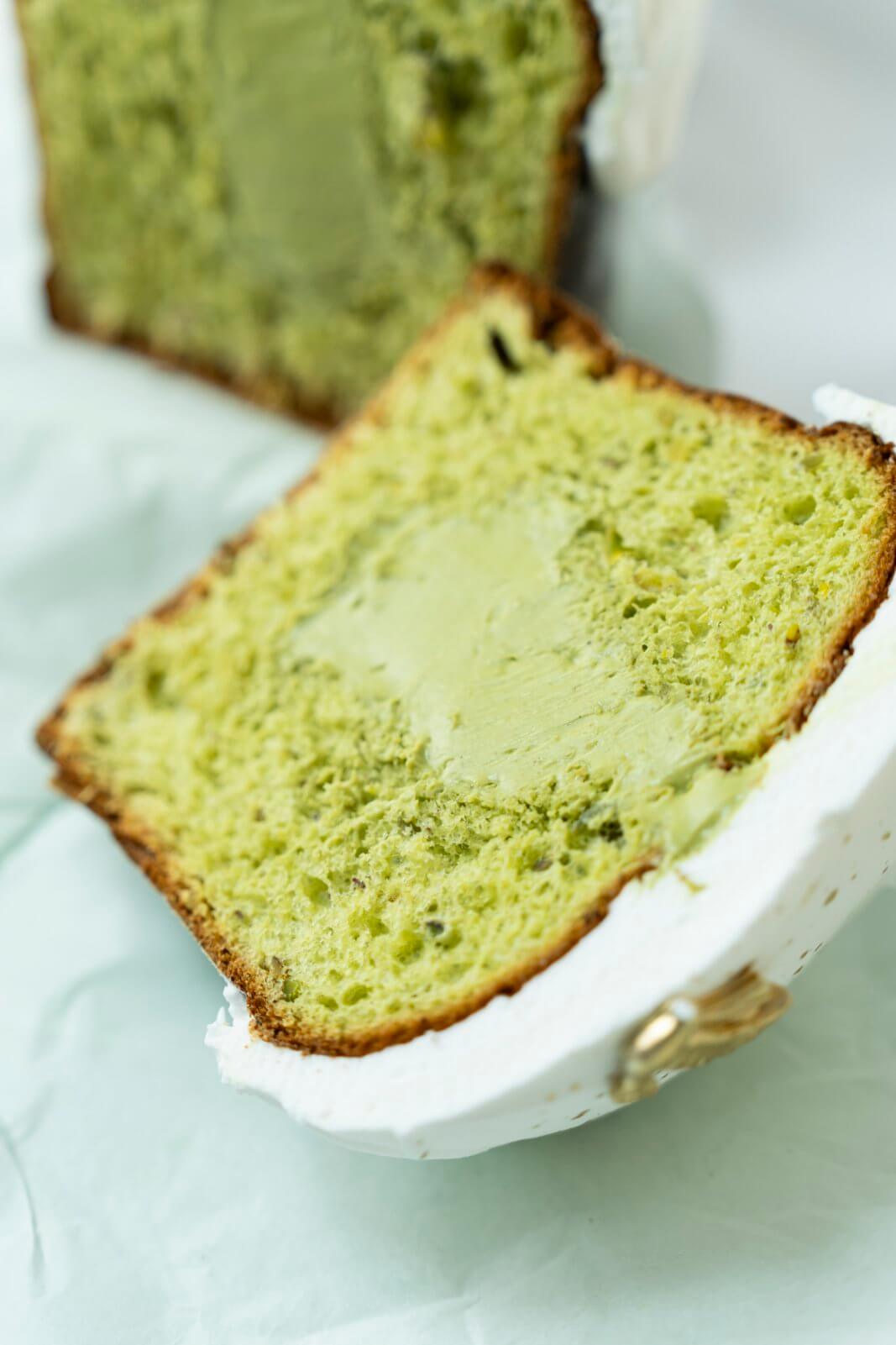 Фисташковый панеттоне, фисташковая шоколадная начинка. В оформлении белок, шоколадные голуби, зелень фисташки, акриловый топпер.